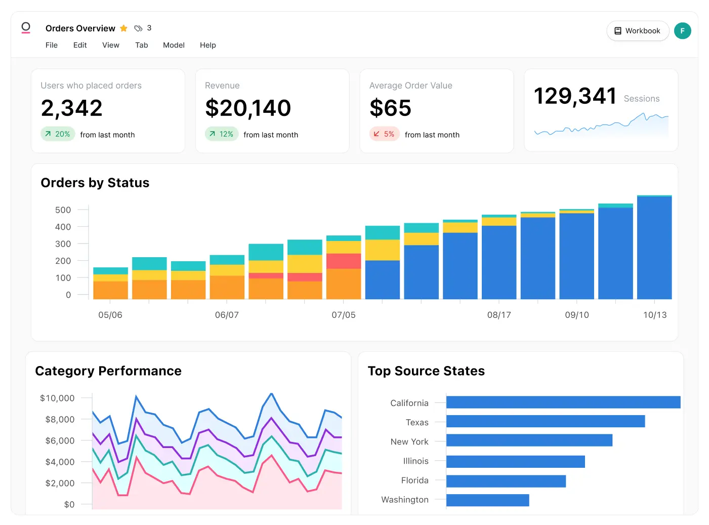 Share workbooks or dashboards with URLs that maintain all your query parameters or schedule them to be sent via email. If you want to share data outside of your organization, check out our embedded analytics.