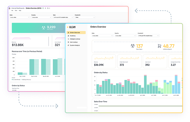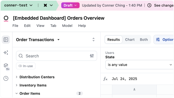 Build customer trust with consistent, accurate numbers. Omni’s semantic model lets you define metrics once and use them across every customer instance.