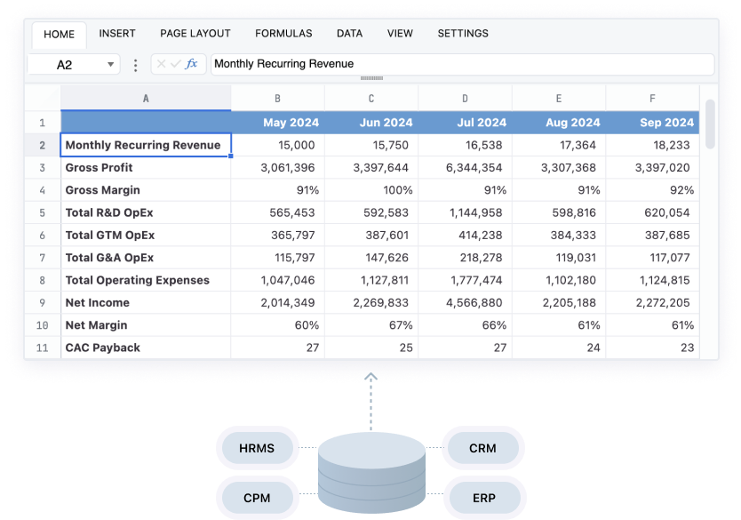 Bring data from your ERP, HRMS, CRM, and more into your data warehouse. Model financials, pipeline, headcount, and more from a single connected source of truth.